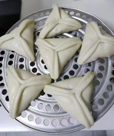 在愛(ài)人的配合下,母親動(dòng)作遲緩的包起糖包來(lái),她左手托起面皮,右手舀起一勺紅糖,手指關(guān)節(jié)僵硬笨拙地、數(shù)著數(shù)般艱難地聚攏、捏緊。一只只飽滿圓潤(rùn)的三角糖包在她掌心成形,褶子細(xì)密如花瓣初綻,竟比以往還要精致幾分。她小心地將它放進(jìn)墊了濕布的籠屜,嘴角漾開(kāi)一絲幾乎看不見(jiàn)的、極淡的欣慰。
