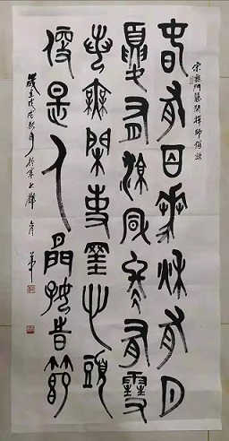 受著名書法大家高延青的啟蒙和影響,鄭彥弟從小就酷愛書法,師從熊一然,擅長大、小篆,甲骨文及篆刻。在做好警務(wù)的同時(shí),堅(jiān)持不懈的學(xué)習(xí)書法藝術(shù),在歷代傳統(tǒng)書法的基礎(chǔ)上專攻周秦大小篆及漢隸,形成了自己獨(dú)特的書法藝術(shù)風(fēng)格。他的書法作品集大氣、正氣、陽剛之氣為一體,功底扎實(shí),筆鋒雄勁、不拘一格,既體現(xiàn)出自然質(zhì)樸的美感,又體現(xiàn)傳統(tǒng)書法的深沉厚重,形成了法度嚴(yán)謹(jǐn)、雍容遒勁的篆隸書風(fēng)。